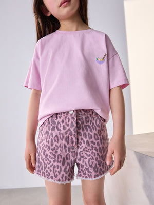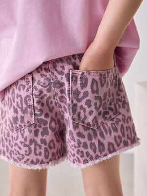 Pink Animal Regular Length Frayed Edge Denim Shorts (3-16yrs)