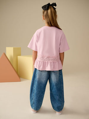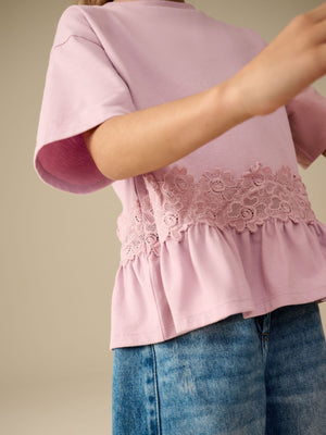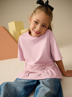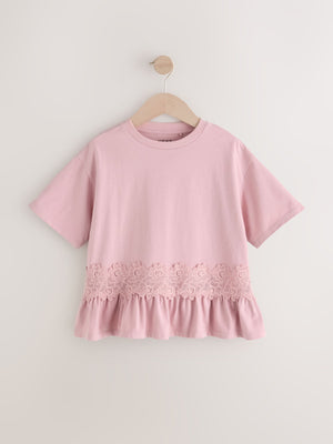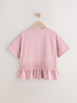 Pink Lace Frill Hem T-Shirt (3-16yrs)
