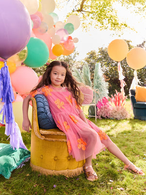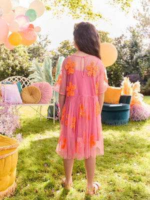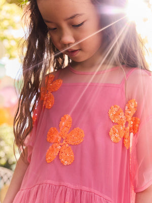 Pink/Orange Flower Sequin Mesh Party Dress (3-16yrs)