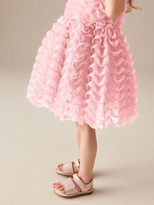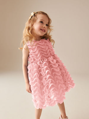 Perfect for parties, this pretty pink dress has a sleeveless design with a layered mesh ruffle design for a flowy look this summer. Regular fit Sleeveless Mesh ruffle design Flowy shape Machine washable. Main 100% Polyester. Lining 100% Polyester. Country of Origin: United Arab Emirates