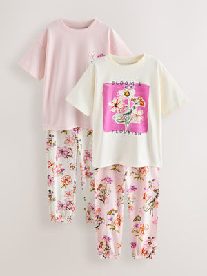 Pink/White Floral Print Jogger Pyjamas 2 Pack (3-16yrs)