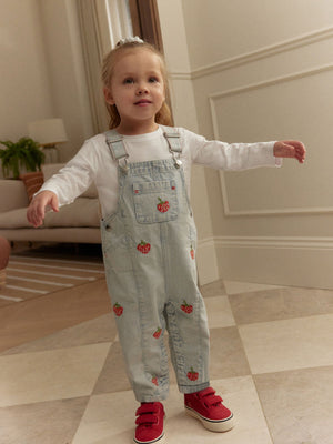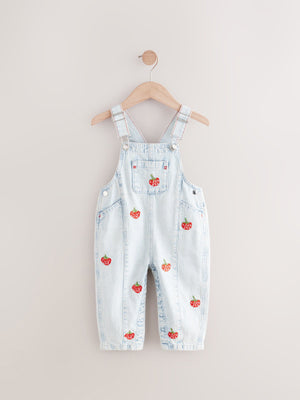 These cute dungarees create the perfect layered look when worn over a long sleeve t-shirt or hoodie, made from pure cotton with strawberry all-over embroidery, side pockets, a central chest pocket and adjustable shoulder straps. 100% cotton Embroidered strawberry design Adjustable shoulders Side and central pockets 100% Cotton. Country of Origin: Bangladesh