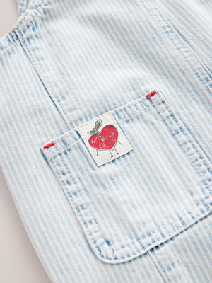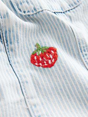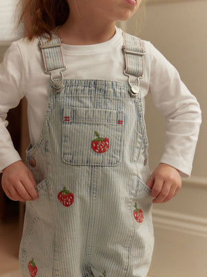 Stripe Strawberry Embroidered 100% Cotton Dungarees (3mths-7yrs)