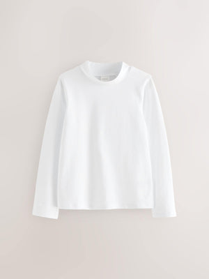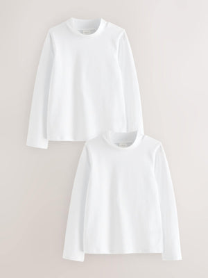 White 2 Pack Long Sleeve Cotton Stretch High Neck Tops (3-14yrs)