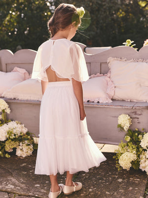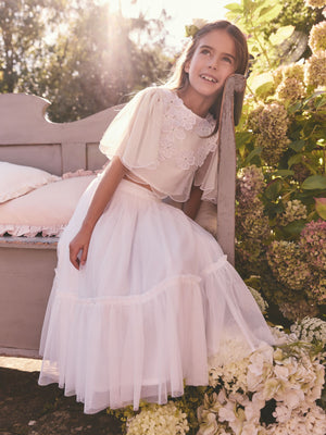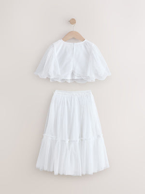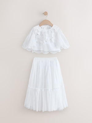 White 3D Flower Flower Girl Top and Skirt Set (3-16yrs)