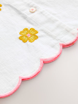 White Embroidered 100% Cotton Shirt (3-16yrs)