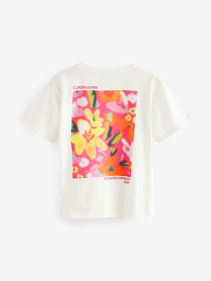 White/Pink Floral Oversized Graphic Print T-Shirt (3-16yrs)