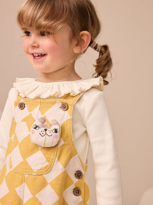 Yellow Harlequin Print Dungarees Set (3mths-7yrs)