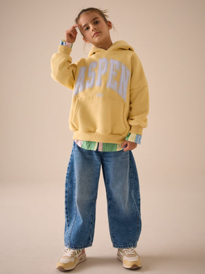 Amp up her casual look with our girls' cotton hoodie. In a classic pullover style, this pure cotton piece is elevated with a graphic print design for added fun. Complete with a kangaroo pocket, long sleeves and cuff hems. 100% cotton Regular fit Kangaroo pocket Long sleeves Graphic print Machine washable. 93% Cotton, 7% Recycled polyester. Country of Origin: Pakistan
